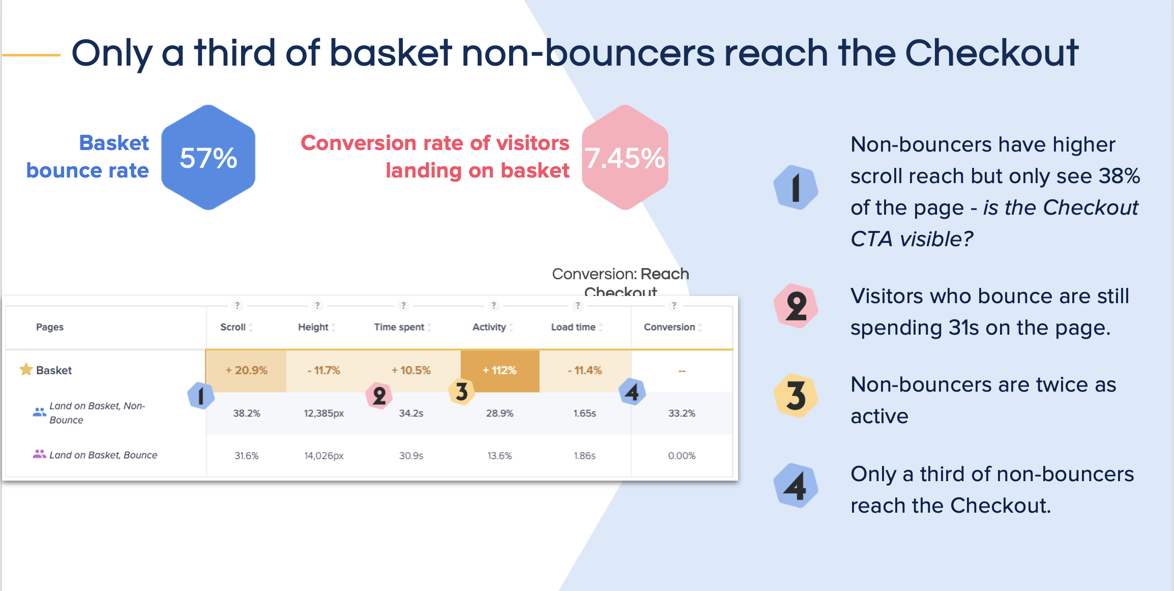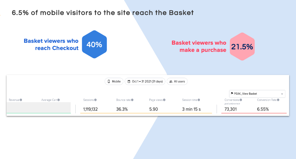 - Only 25% of users who visited the Basket proceeded to Checkout