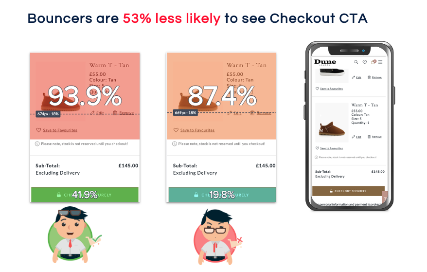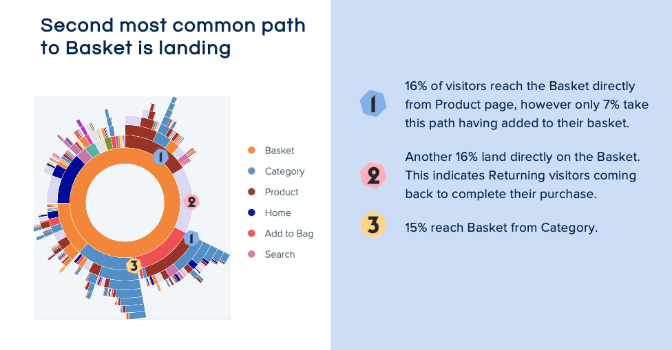 - 14% of users who navigated to Checkout looped back to the Basket